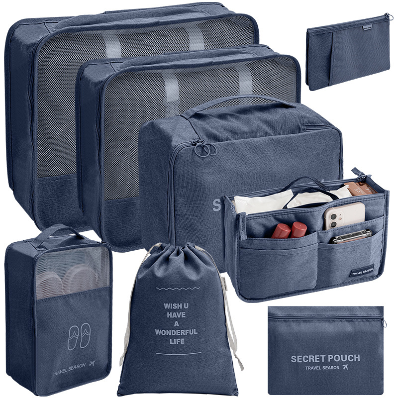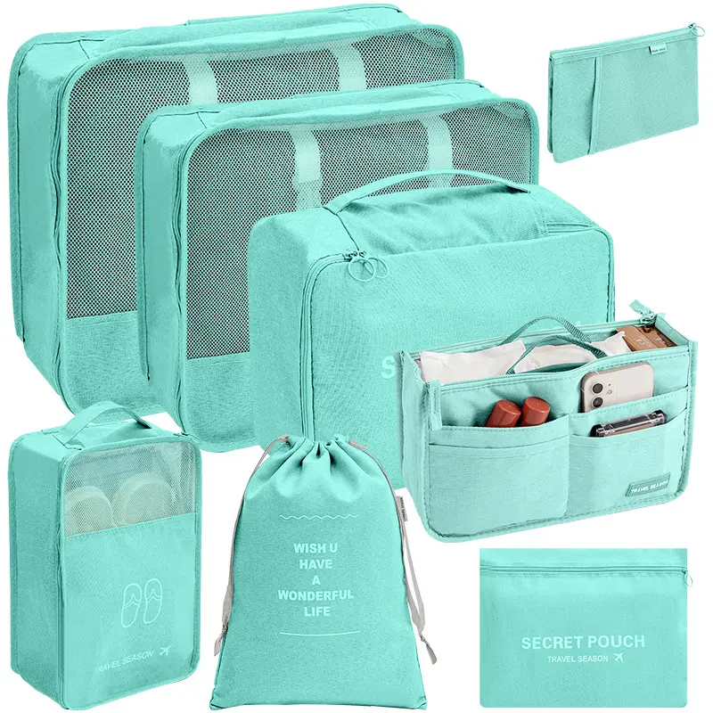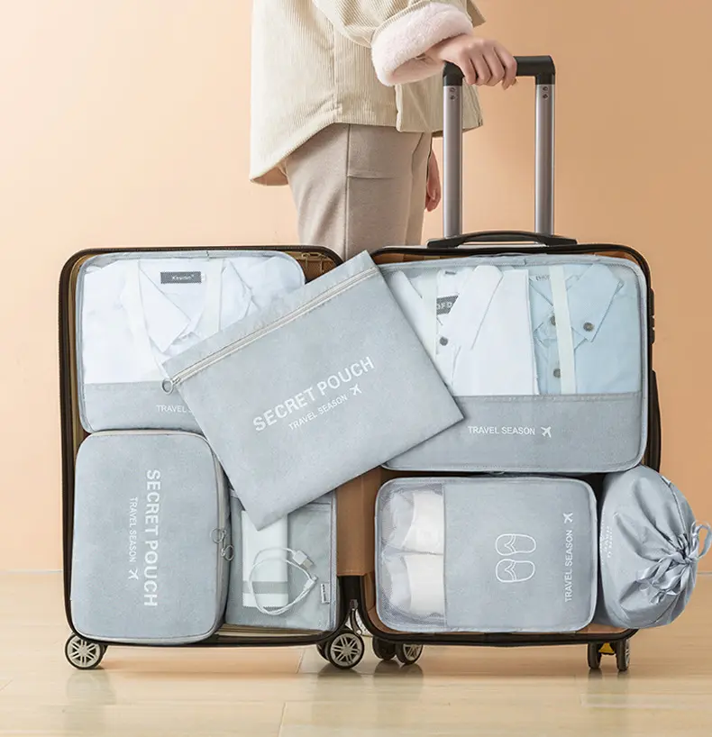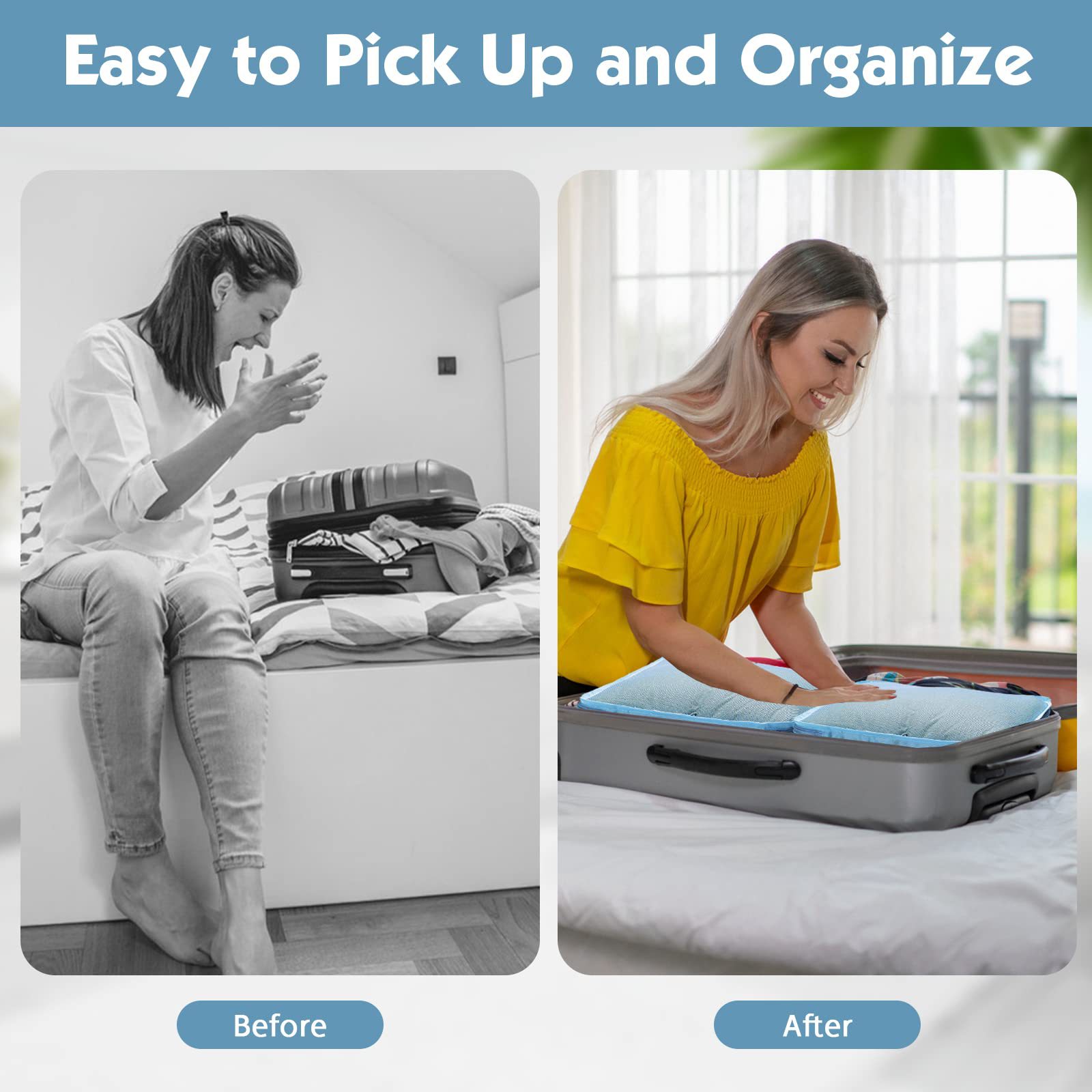 DOUBLE CAPACITY DESIGN SAVES 60% MORE SPACE ULTRA-STRONG TWILL FABRIC – WATER RESISTANT DELUXE 8-PC SET for SMARTER PACKING TRAVEL WITH STYLE |