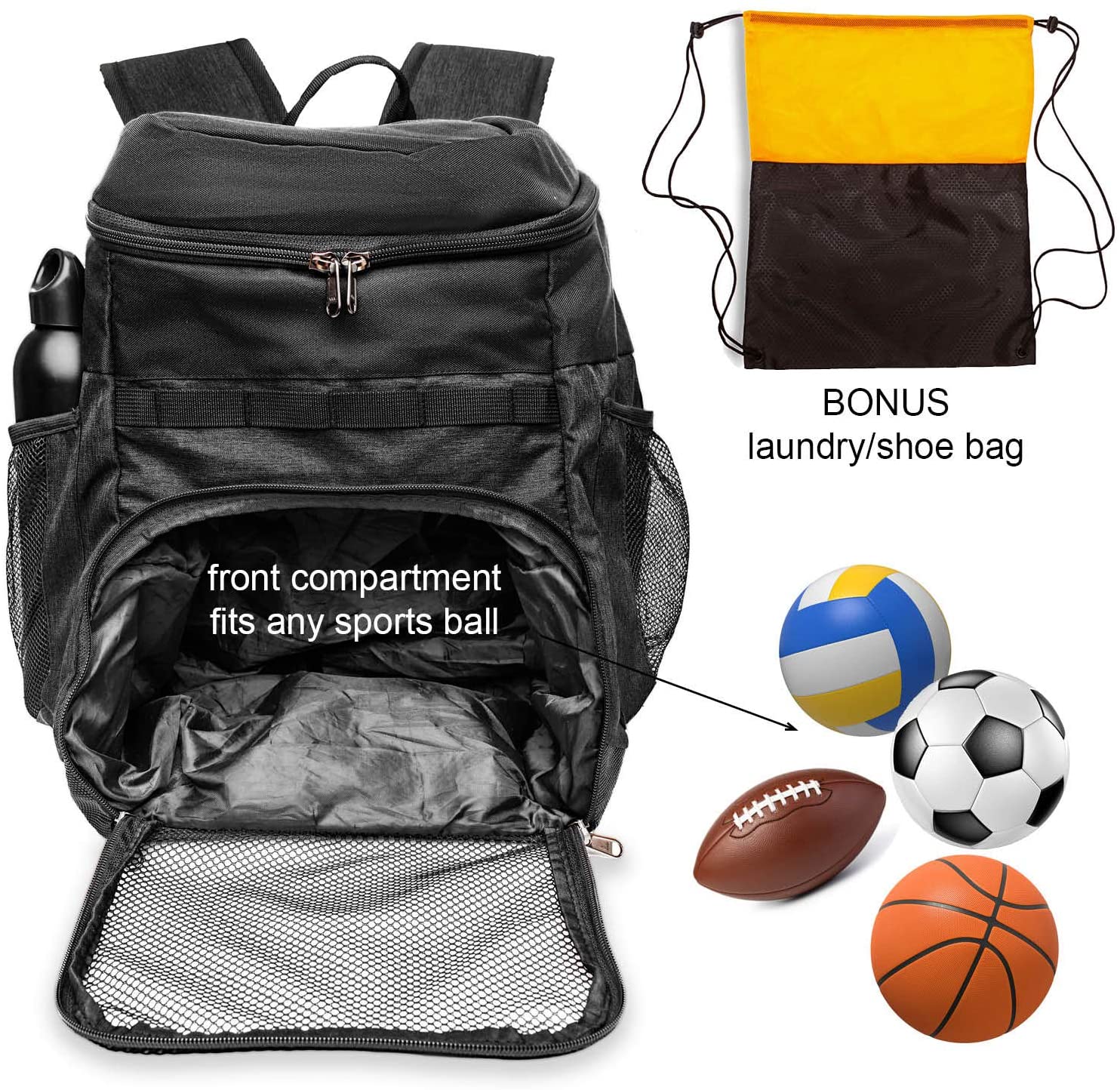 | *Style | Basketball Backpack with Ball Compartment Sports Bag for Soccer Ball Gym, Outdoor, Travel |