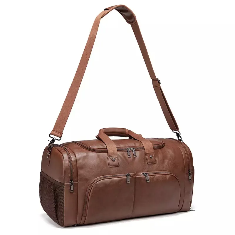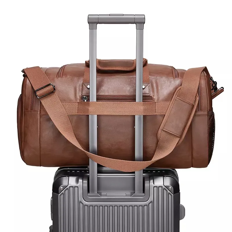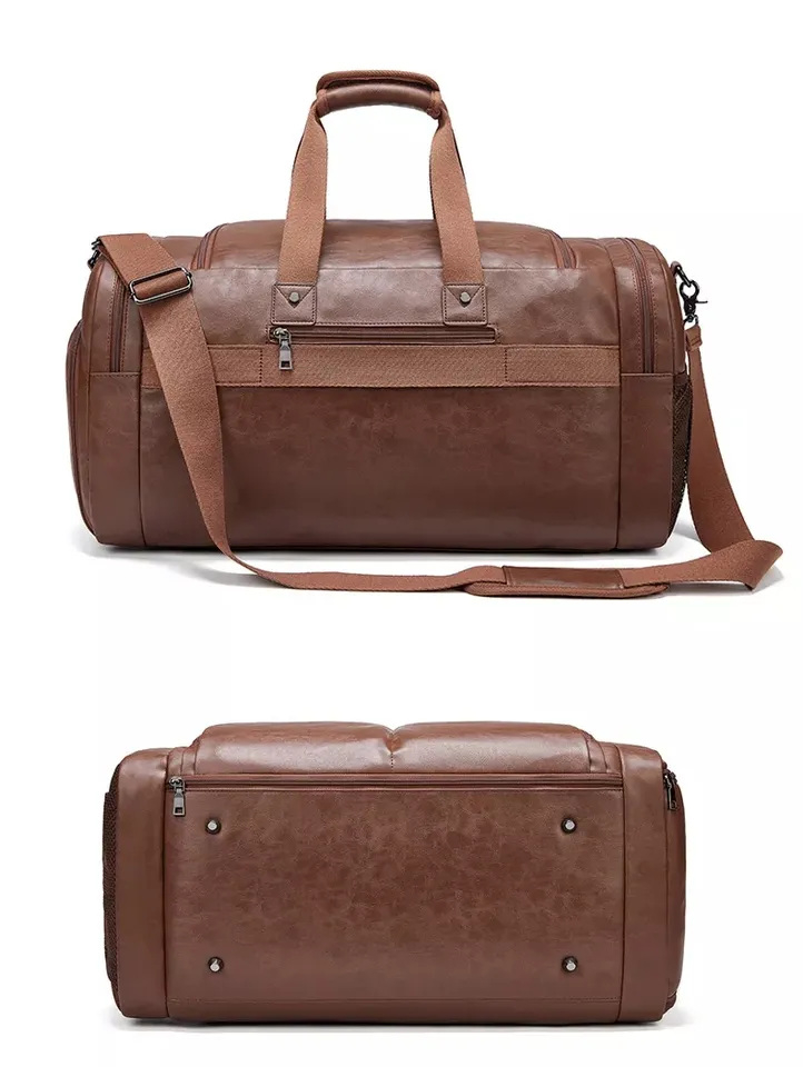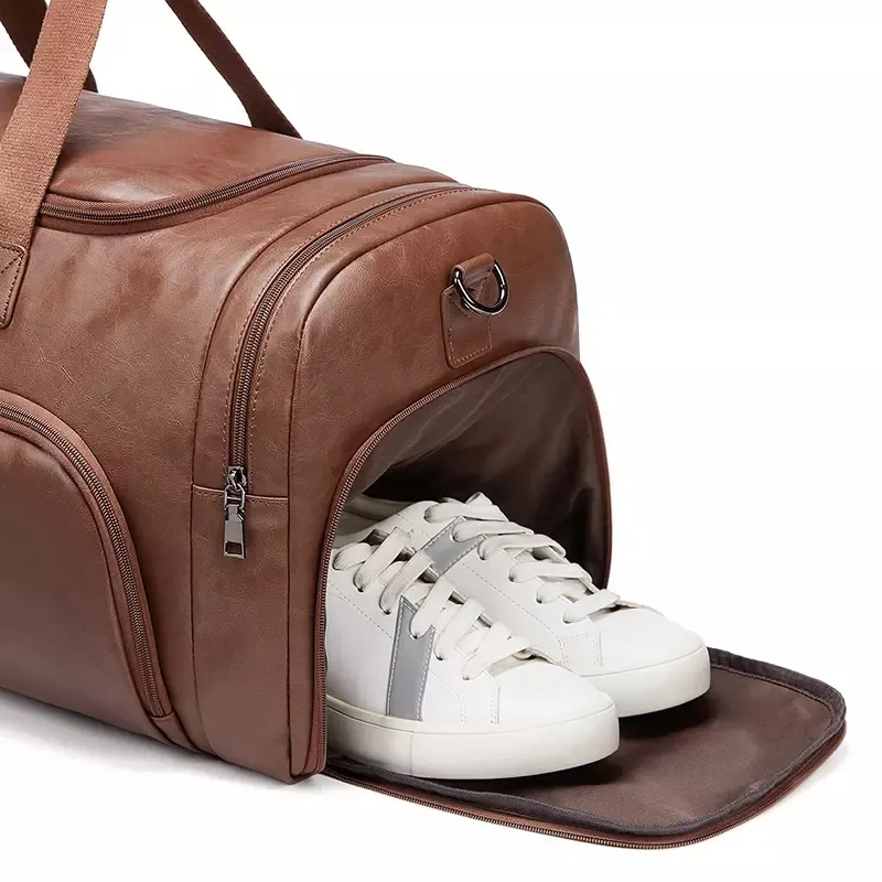 custom logo pu leather travel gym duffle bag for Men, Women, with shoes compartment |
