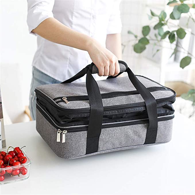 Each inside compartment is 15″ x 9″ x 2″ and can hold a 9” x 13” baking dish |