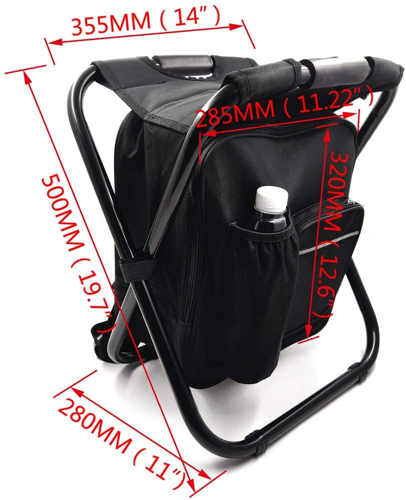 Size:41*29*36cm Material:600D polycanvas chair, insulated cooler and backpack all in one unit |