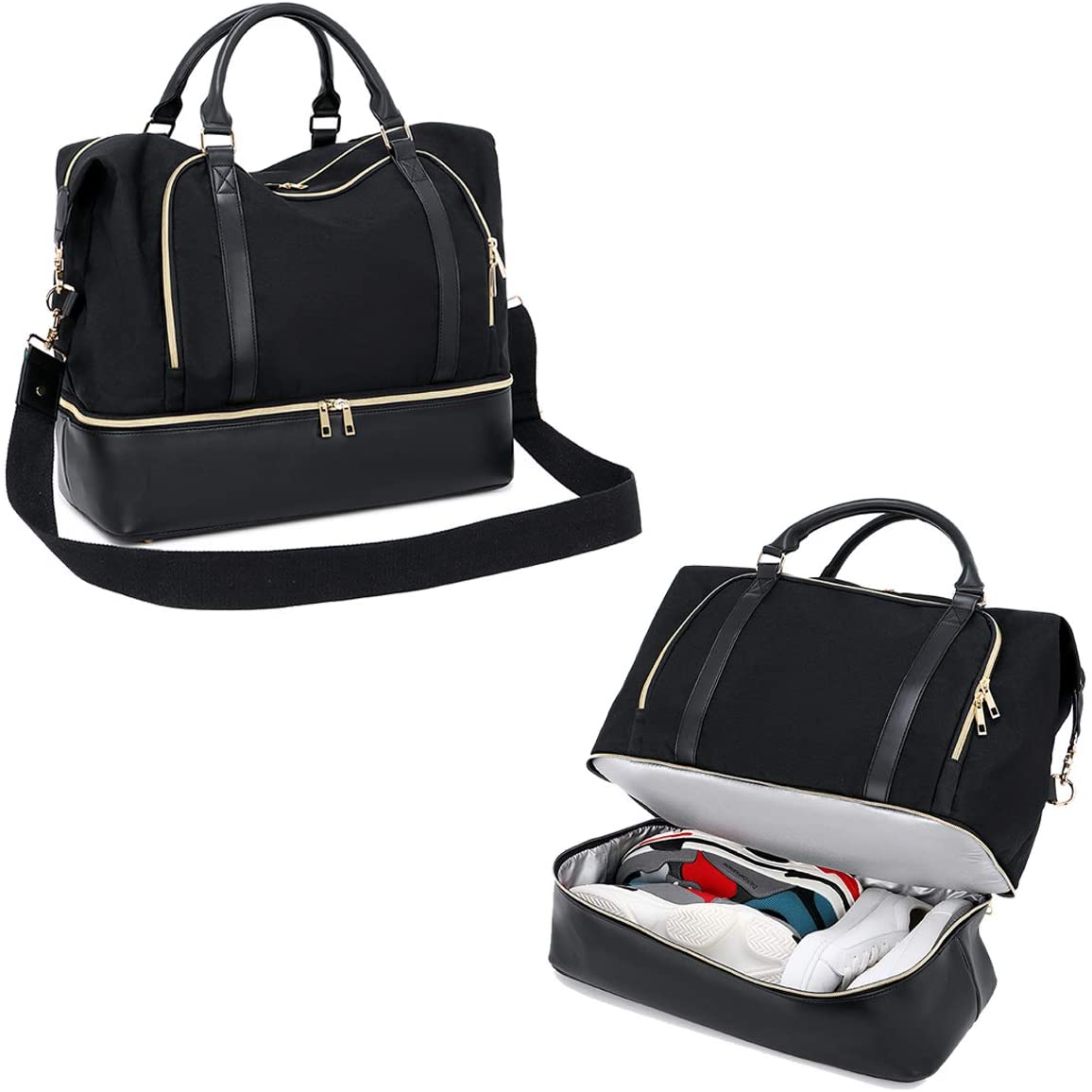 2: DRY & WET SEPARATION 3: MULTI POCKETS Gym Bag Water Resistant Fitness Workout Sports Duffle Bag 4: SPACIOUS CAPACITY with Hot Design Customized Factory Price Overnight Duffel Carry-on Tote Bag Women Ladies Travel Weekender Bag