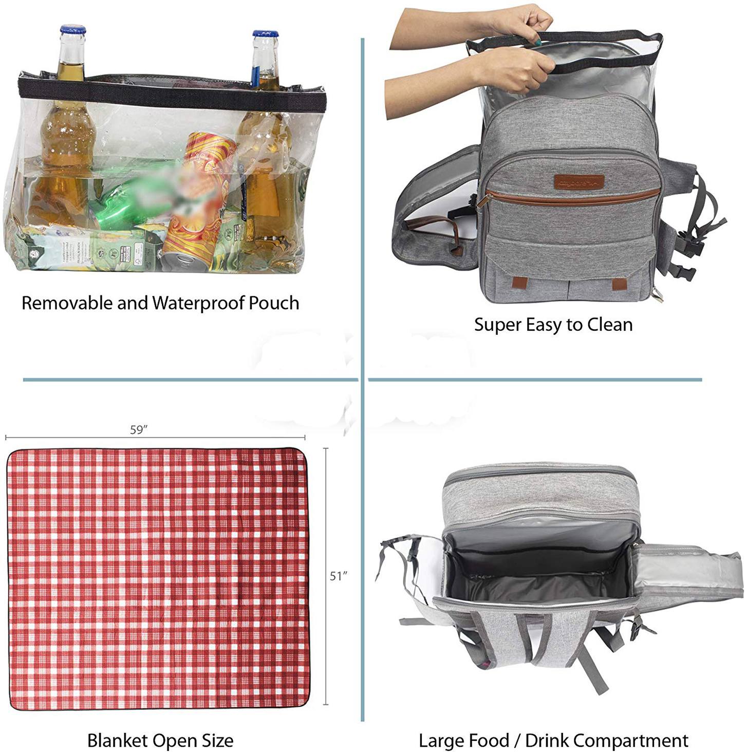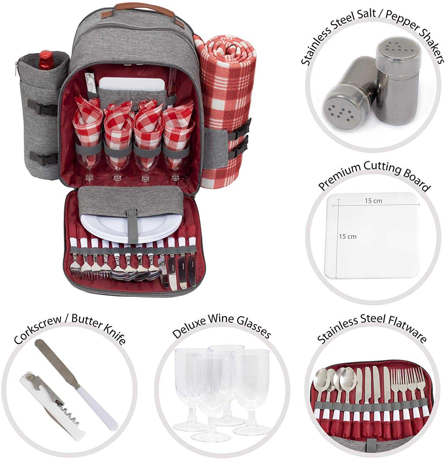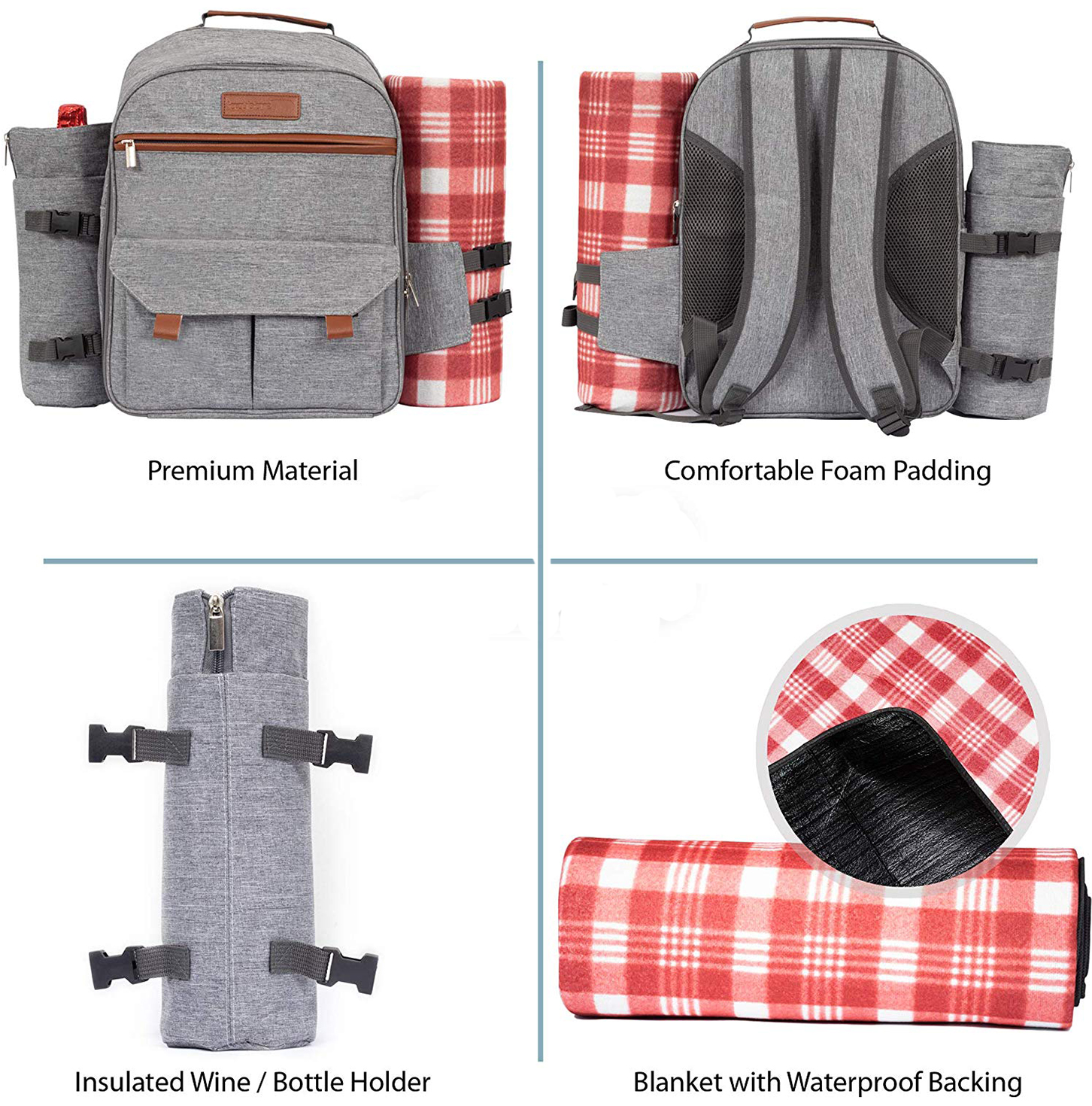 Picnic Backpack for 4 Travel Picnic Food Storage with Blanket, Insulated Cooler Bag for Outdoor Wine Picnic Basket Set |