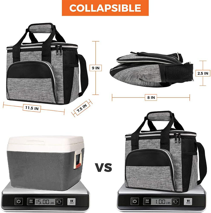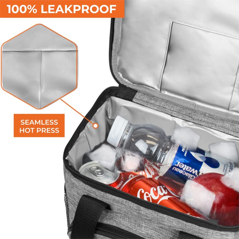 school, or construction work. * THERMAL INSULATED AND LEAKPROOF This small travel cooler bag is equipped with soft PEVA liner that is heat-sealed and leakproof, making this ideal for transporting any food and beverage. Its insulated lining will keep your beverage cold or your food hot/warm, making this a versatile bag for carrying cold beverages to the beach or lunch to your office. You may even fill ice in the cooler bag to keep your beverage ice cold during any game days! |