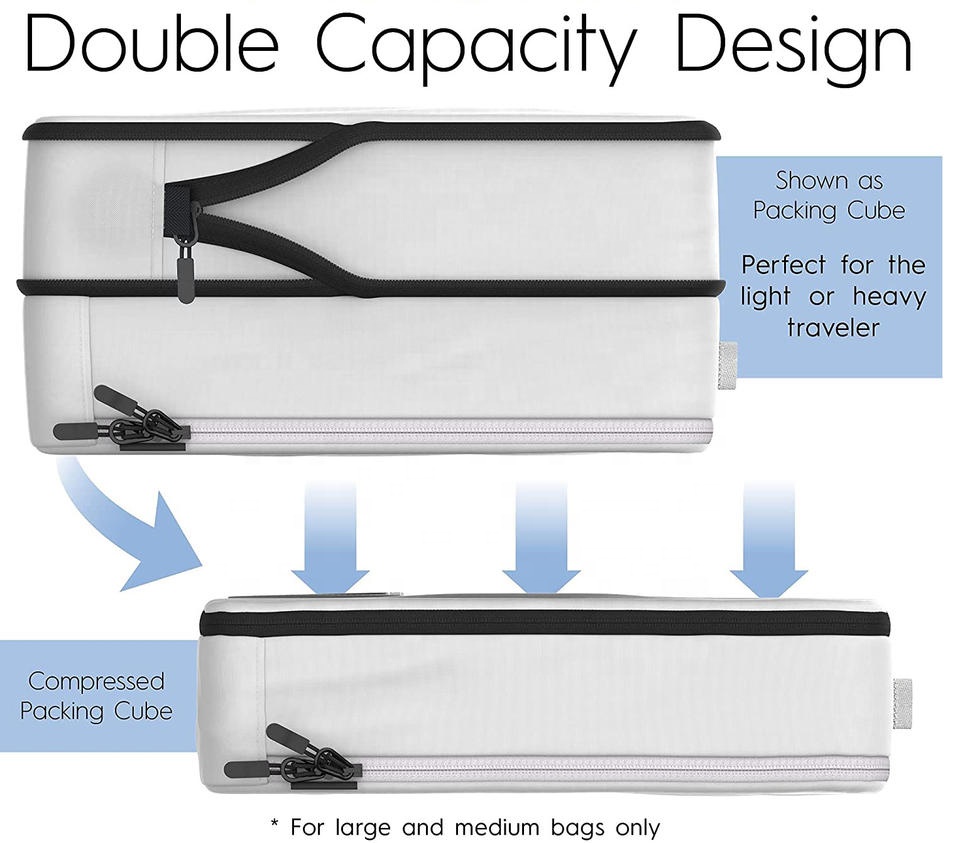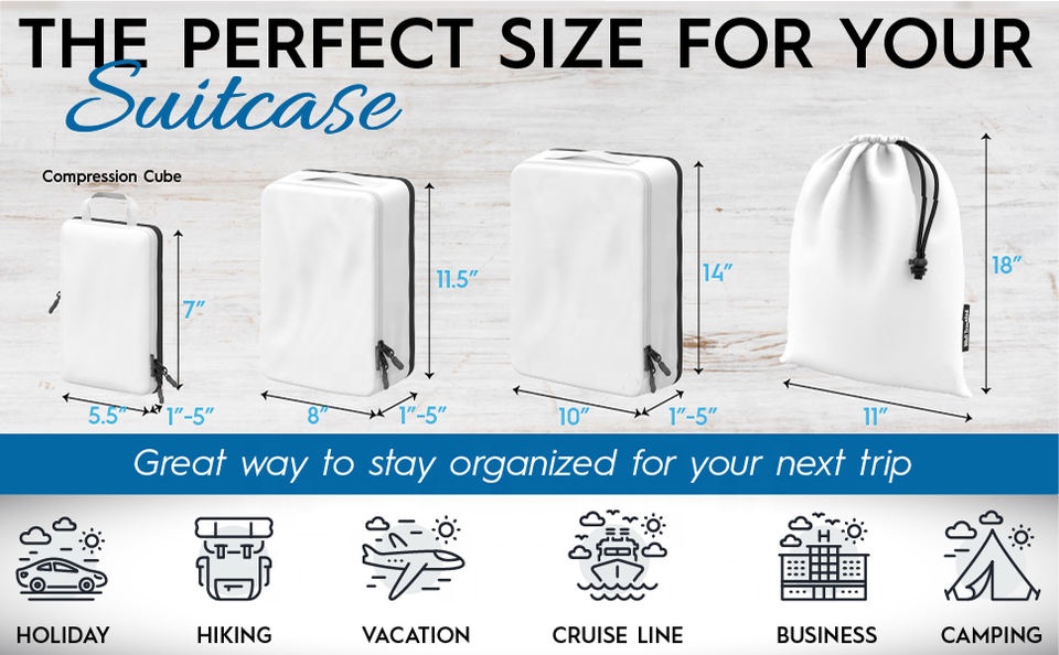 6 Set Of Packing Cubes Suitcase Luggage Organizer Black Compression Travel Cubes
